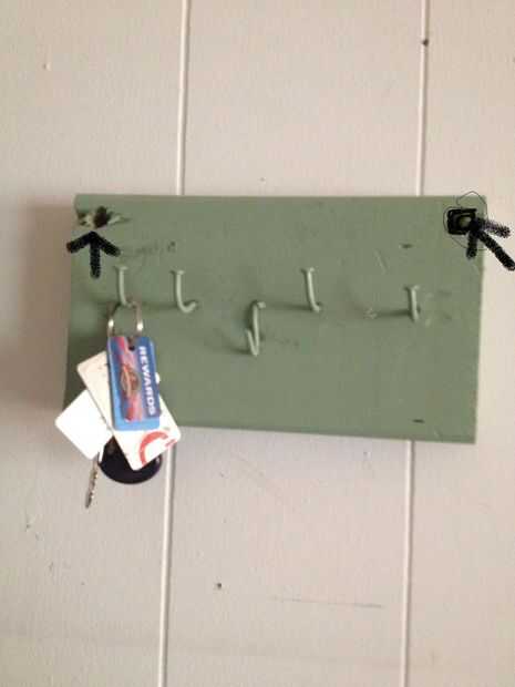 Necesitaba una forma de colgar las llaves y otros objetos pequeños, y no pude encontrar nada de lo que era conveniente. Esto fue diseñado para ser muy robustos y llevará una buena cantidad de peso. Fue creado de una vieja estantería de aglomerado que