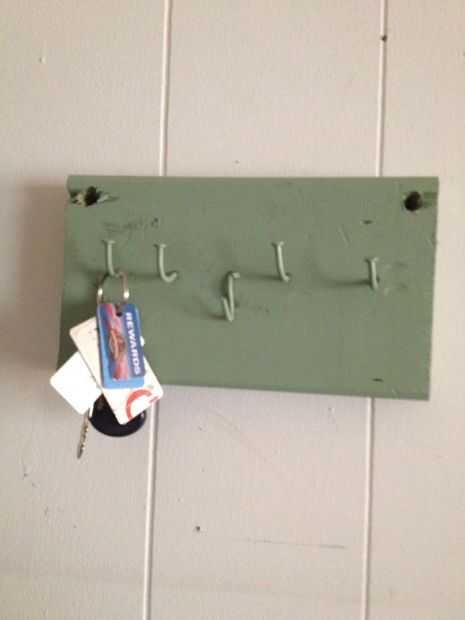 Necesitaba una forma de colgar las llaves y otros objetos pequeños, y no pude encontrar nada de lo que era conveniente. Esto fue diseñado para ser muy robustos y llevará una buena cantidad de peso. Fue creado de una vieja estantería de aglomerado que