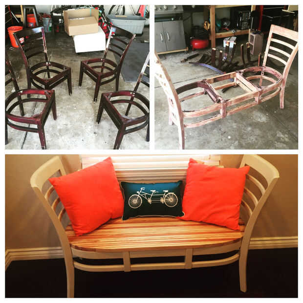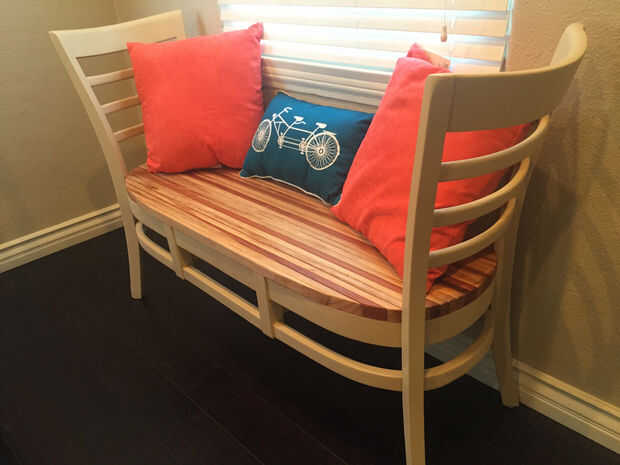 Después de agarrar algunas sillas menos útil a la izquierda al lado de la carretera, mi esposa y yo creó un gran banco que encaja perfectamente debajo de una ventana.