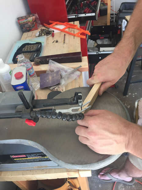 - Corte las curvas trazadas. Opté por utilizar una sierra de contornear en lugar de la Sierra de vaivén debido a las curvas de poca profundidad.