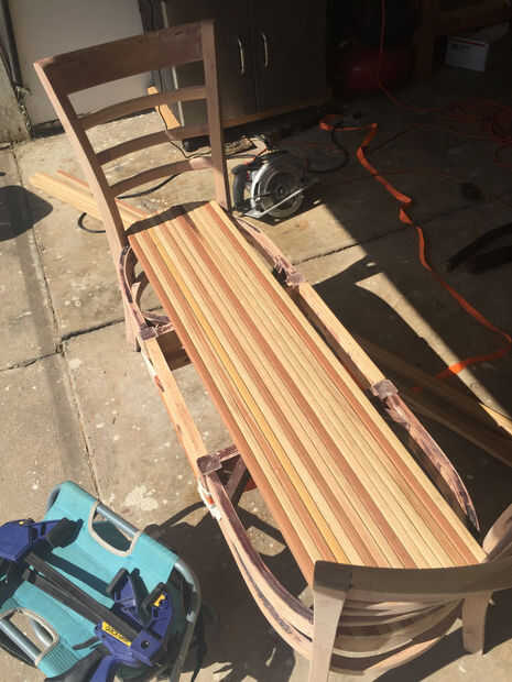 - Colocar las tablas en la abertura entre los respaldos de la silla. Si es necesario, corte una junta para adaptarse.