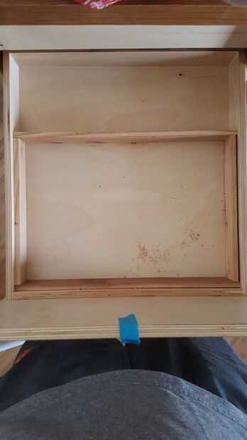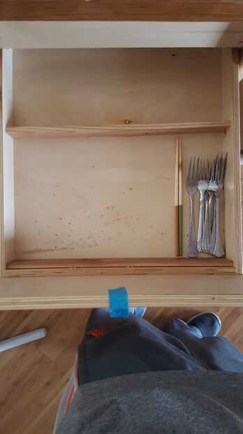 He marcado el ancho del cajón y cortar la acción. Luego coloqué algunos utensilios en el cajón y cortar a los lados.