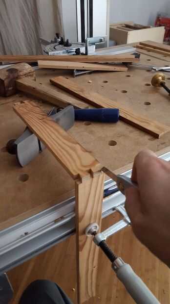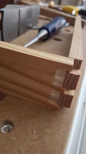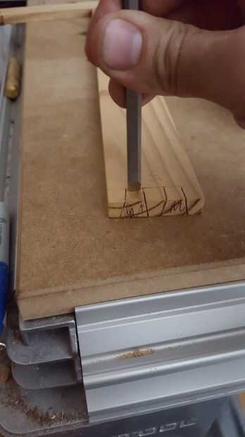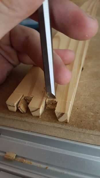 Establezca la Junta de cola para marcar los ángulos en el borde de la placa de pernos. En lugar de utilizar una sierra de marquetería, también puede utilizar un cincel para romper los residuos. Coloque el cincel de la línea de cuchillo para romper la mayor parte de los residuos y luego pare a los residuos restantes.