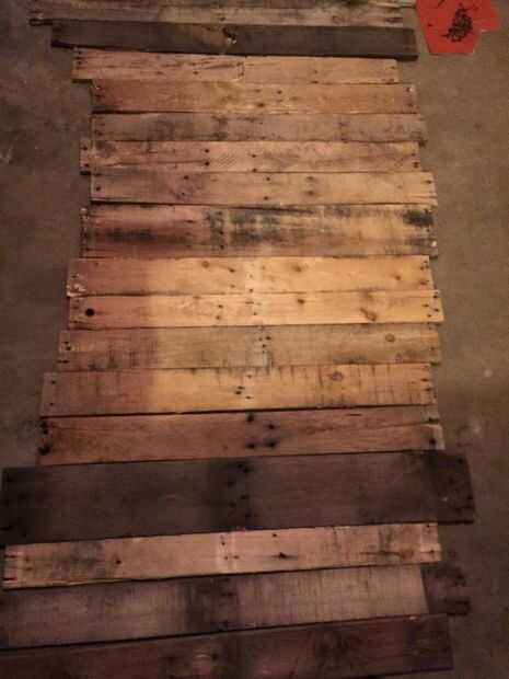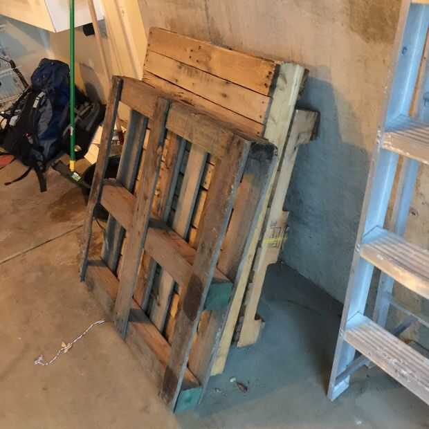Se reúnen algunos palets viejos. Generalmente puede encontrar palets de gratis o muy barato en las tiendas, almacenes, almacenes de madera, etc.. He intentado encontrar plataformas que variaron un poco en color y textura. También miré que eran más una paliza y sucio, que quería la madera con más carácter.