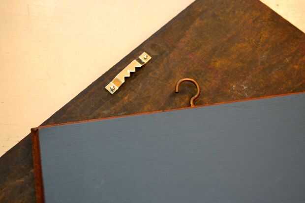 Si desea, la cara del tablero de la arena y una capa o dos de pintura hasta el diseño subyacente no es visible. Aquí, hemos pintado solo el muy delantero y dejó terminar los bordes como madera expuesta, a la que aplicamos una cera oscura.