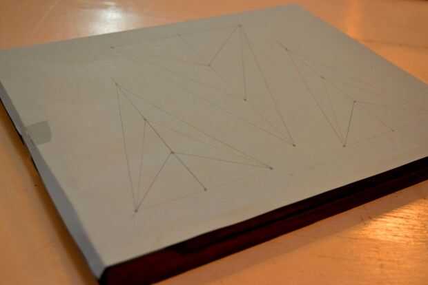 Su pedazo de papel del rasguño a la Junta de la cinta y dibujar el diseño, marcar las intersecciones (donde irá las uñas).