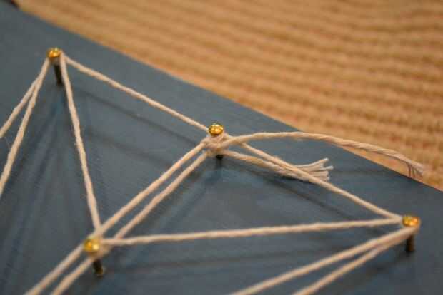 Atar la cuerda firmemente alrededor de la uña partida y empezar a conectar los puntos por envolver la cuerda alrededor de cada uña posterior. Ten en cuenta que quizás tenga que probar un par diferente de regalo rutas para obtener un patrón de forma y solapamiento que se adapte a su diseño. Asegúrese de que le estás tirando la cadena apretada entre cada clavo, pero no en cuanto a sacar las uñas!