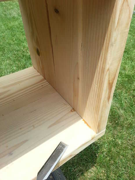 Comencé por raspar todo el pegamento extra de las articulaciones. Una vez completo, empezar con grano 80 para resurgir la madera recuperada. Acabado de lijar con grano 150-220 y limpie todo el polvo con un paño de la tachuela o pintores.