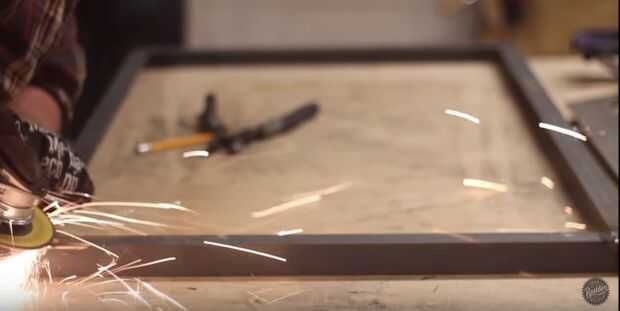 Aquí vas a querer terminar el marco de la soldadura después de comprobar para el cuadrado. Luego de sacar un disco de la aleta y moler las soldaduras hacia abajo para que la parte posterior encuentra al ras contra la pared.