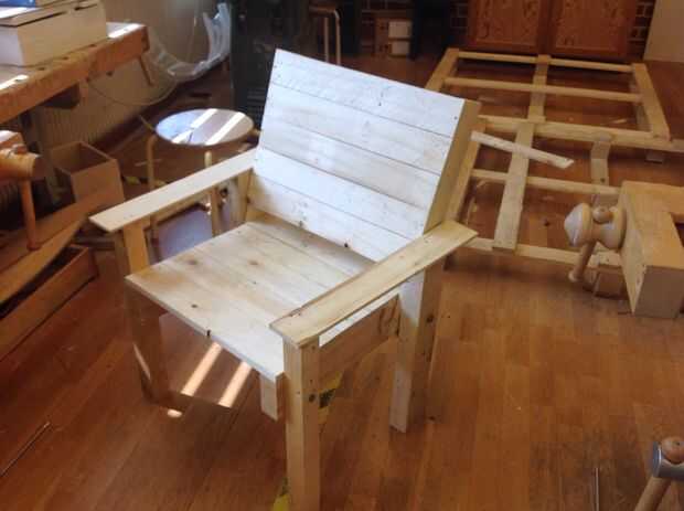 La inspiración para esta silla vino de ver uno en un muelle en el Lago Tahoe. Es grande – dos asientos bastante cómodamente – y altura, con una bonita vista con protección contra balas de cañón y perros mojados.Éste está hecho de madera reciclada de