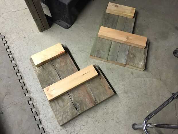 Una vez que las piezas cortadas, pueden ponen hacia fuera como en la foto, taladre y atornille las piezas. Utilicé tornillos de 3" y dos por la Junta en un patrón alterno para evitar que se resquebraje. Básicamente, yo sólo alineado de la pieza de 2 x 4 con el borde superior de la cara y el paso a su altura; ambas piezas con la distancia aproximada a la parte delantera y la espalda que era igual a la anchura de la Junta que iba a utilizar para cubrir todo el asunto (aproximadamente 3/4"). Una cosa es aquí la imagen es incorrecta. Para realmente hacer un taburete, necesitará tener el diseño con las tablas en una imagen del espejo que vas a hacer dos del mismo lado. Me preguntan cómo sé esto.