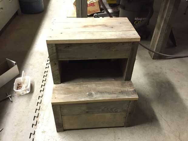 Una cosa en cuenta, es útil instalar la zona de paso interno antes de encerrar el frente o espalda porque de lo contrario sería difícil llegar con una clavadora de aire/taladro inalámbrico. Creo que en el segundo taburete, lo hice antes incluso el escalón superior.