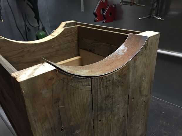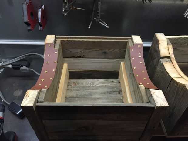 Pensé que sería un detalle que hizo ish/resistente más de principios del siglo XX buscando que cruzaron la línea a overkill de manera de todos modos. Además, los cortes no salen muy recto o liso con la sierra alternativa y quería esta área a ser lisa y libre de la astilla. Esto era una buena solución porque se convirtió en un buen lugar para tomar estas cosas para moverlos. Las bandas realmente unir las piezas bien pero dudo sobre si son o no necesarios.