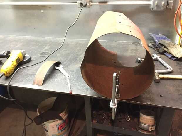 La razón por la utiliza el taladro de descarga del tubo como el radio para el corte es porque había planeado hacer este paso y en lugar de doblez del metal de hoja recta en un radio, pensé que sería más fácil simplemente recorto.
