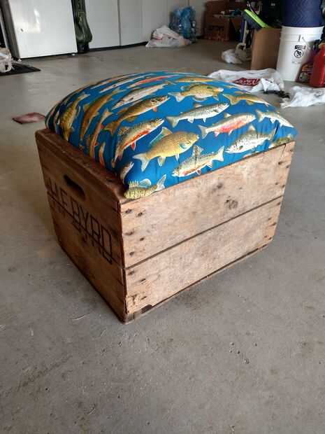 Reclamado madera cajón de envío en el asiento del balanceo con almacenamiento