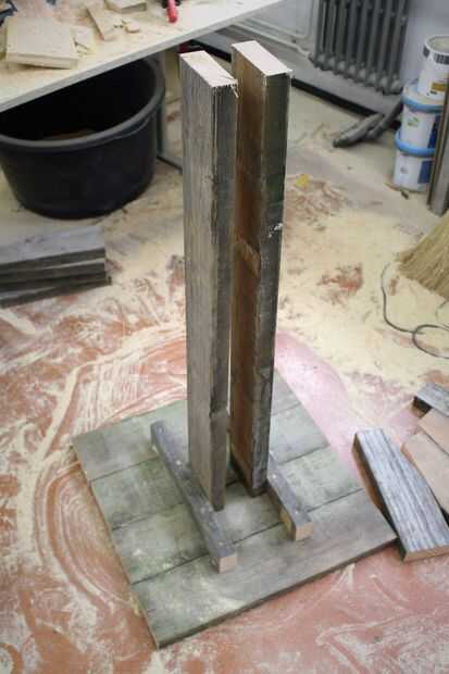 el marco de esta mesa de centro se hace de la madera contrachapada. se podría ser "pelado" con casi cualquier material. Esta es la segunda vez hice esta pieza. la primera i utiliza finos corto "retazos" de madera recuperada y montado s