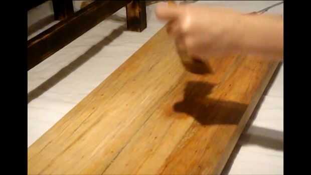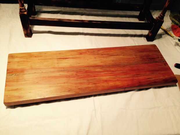 • Se aplicaron 3 manos de laca a base de agua a la tapa de tabla de pino Paraná, lijar entre cada capa.