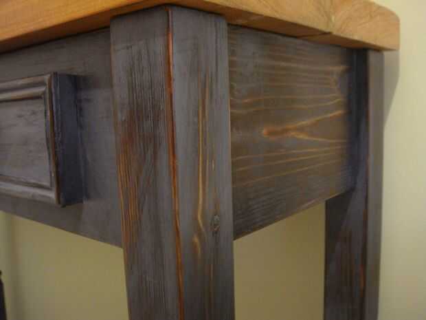 Esta tabla de entrada se hace con un mostrador de madera, emparejar las piernas afiladas y perillas, así como un marco de madera contrachapada. Necesitaba algo bastante pequeño para caber la zona al lado de mi puerta, así que esto es lo que he constr