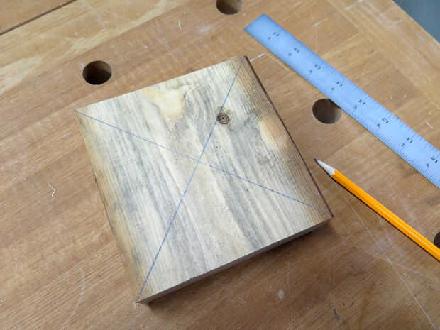 A continuación, dibuja una X en el bloque cuadrado de esquina a esquina. Se trata de una forma rápida de encontrar el punto central.