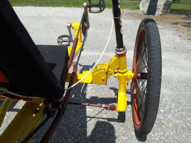 Los scooters del retroceso tenían reposapiés nylon. Éstos fueron quitados y el marco, que fue de tubería cuadrada de acero fue cortar separar frentes de scooters de traseros. Los frentes se colocan frente a unos de otros y soldado con autógena juntos.