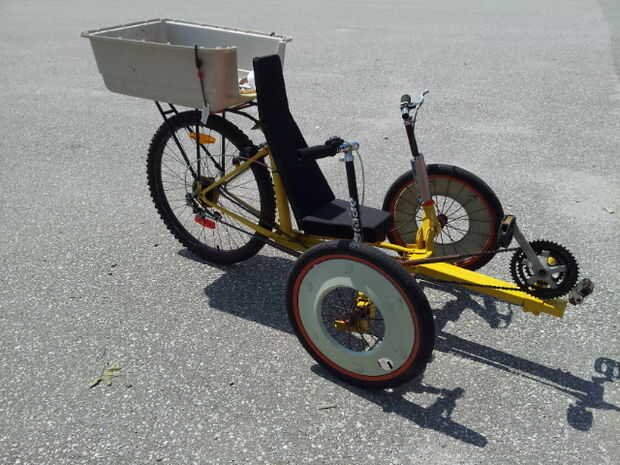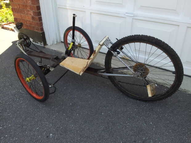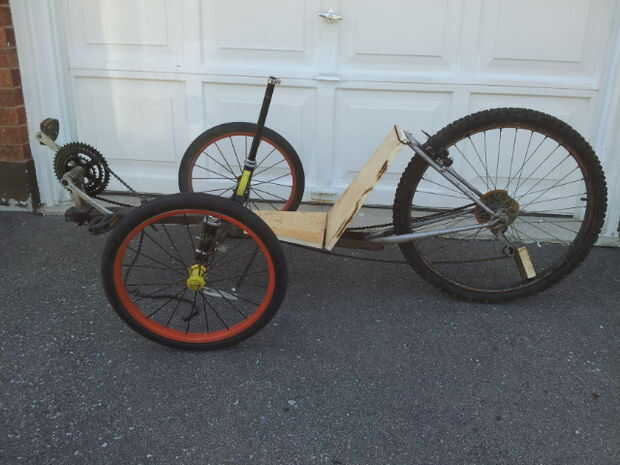 Corte 2 piezas de ángulo de hierro y soldadura en la forma de un canal de C dejando una separación como una ranura para sujetar los tornillos. Esto permite que el asiento sea ajustable por deslizamiento a lo largo de la pluma del centro. El brazo delantero es otro 2 tramos de ángulo de hierro soldadas con autógena juntas, otra vez como un canal de C, pero esta vez con el lado abierto hacia abajo y sin espacio. El soporte inferior inestable unidad ajusta deslizando a lo largo de este y cerraduras con una abrazadera en lugar de moda de la manera mostrada por planes de atomic zombie.