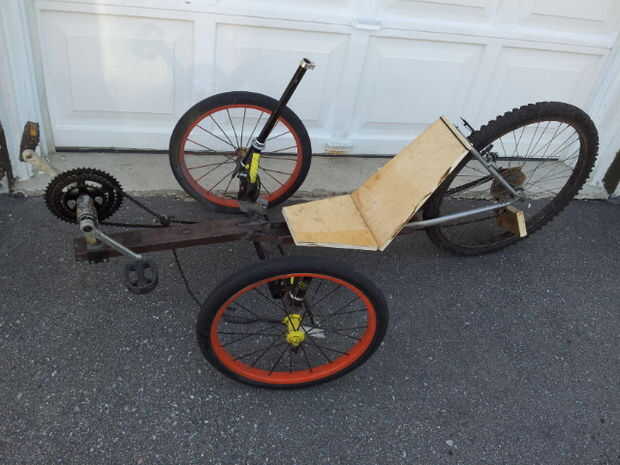 El asiento y el respaldo fue hecho de madera contrachapada con las dimensiones proporcionadas por plan de atomic zombie. Una de las pocas cosas que compré en realidad era un conjunto de 4 almohadillas de espuma que se enclavija de ensamblándolos para total de $2,50. Las almohadillas fueron cortadas a la medida y pegadas a la madera contrachapada y uno al otro donde usé 4 capas (solo asiento). Respaldo es una sola capa. El tejido negro utilizado para tapizar el respaldo del asiento es de un viejo paraguas.