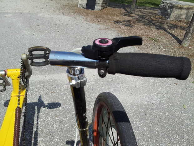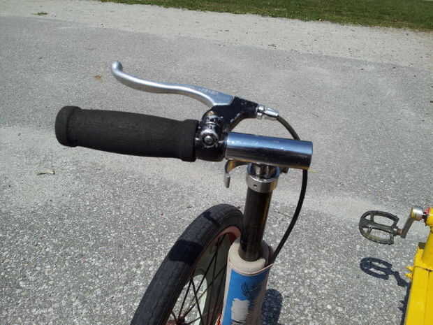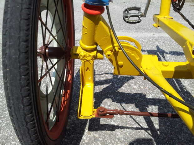 El King pin inclinación quedó en lo que los scooters de patada en posición totalmente desplegada. Rueda fue creado usando un transportador y luego soldar el marco en esta posición.