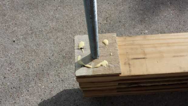 Con todas las piezas de corte y los agujeros taladrados, es la hora de secar cada pieza alrededor de las varillas roscadas y luego en su lugar.