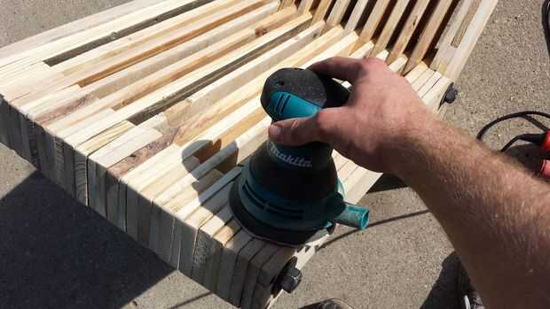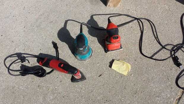 He tenido bastantes opciones de lijado para el trabajo. Usé una lijadora excentrica para redondear las esquinas, lisa abajo juntas muy ásperos e incluso para hacer la silla perfectamente nivelada.