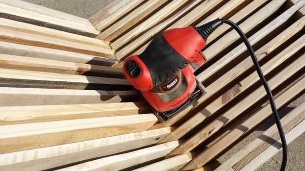 Utilicé una lijadora de Palma en las esquinas de la silla, específicamente donde el respaldo y el asiento se unen en un ángulo y darle las tablas una suavidad general.