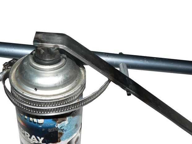 (la construcción de la imagen no es exactamente el mismo como se describió anteriormente, pero funciona de la misma. Aquí se utilizó un largo roscado barra, una tuerca y un espaciador sin hilo. La varilla roscada es soldado con autógena en la tira del metal)