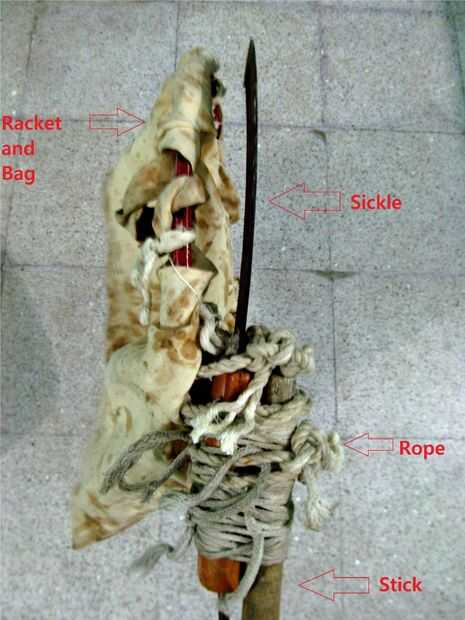 1. Coloque la bolsa en la raqueta de bádminton, que cuando el fruto cae, la bolsa debe mantener correctamente. La bolsa debe ser herida correctamente sobre la raqueta. Utilice hilo para ello.