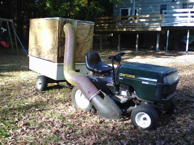 ha sido un anterior Ible que describe cómo hacer un receptor de la hoja de estilo trailer de un cortacéspedes de montar a caballo.Este Ible describe un colector de hierba/hoja que se encuentra en una plataforma conectada a la parte trasera del cortac