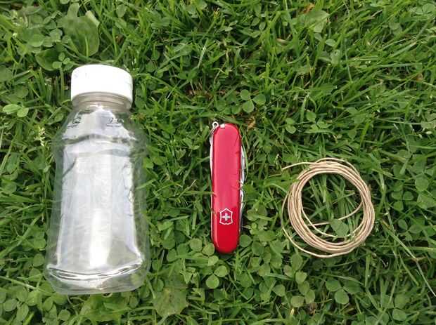 Se necesita un pequeño cuchillo para tallar la botella. Pero supongo que, si usted está hacia fuera en el exterior es más probable tener uno.