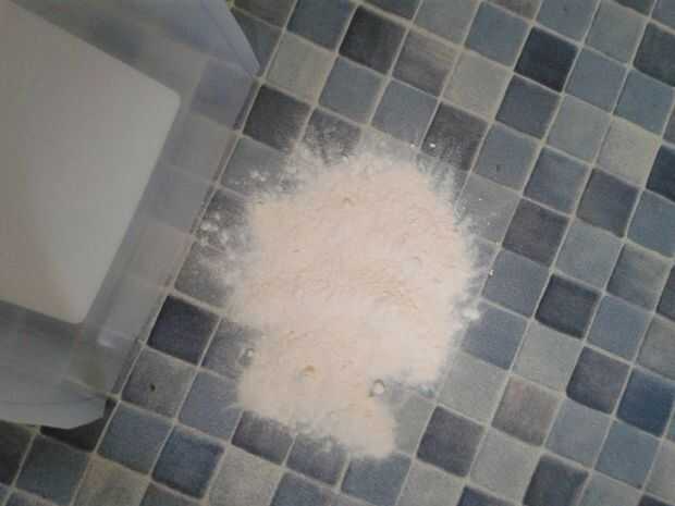 la otra mitad no era casa pensé una demostración rápida con harina en el piso de la cocina sería ok. h & s no deje que la otra mitad que captura sujeción de harina en el piso para hacer una demostración.