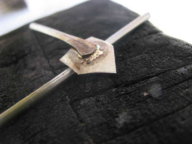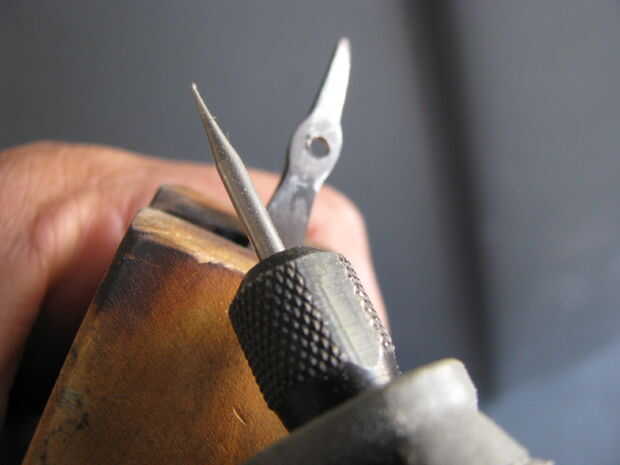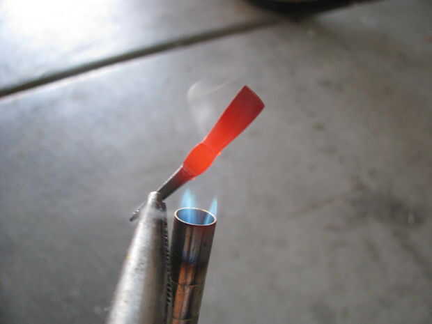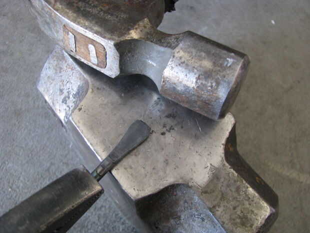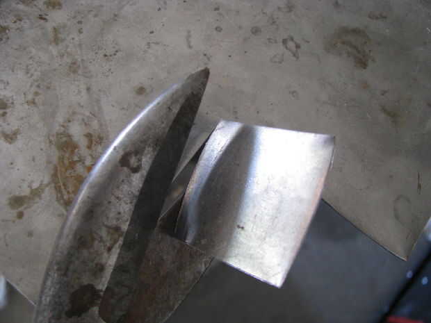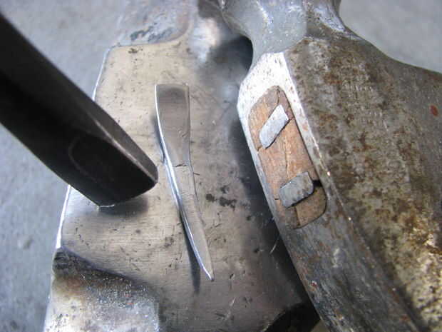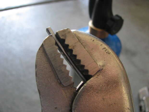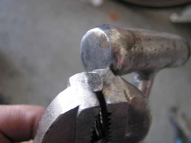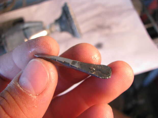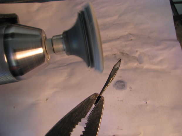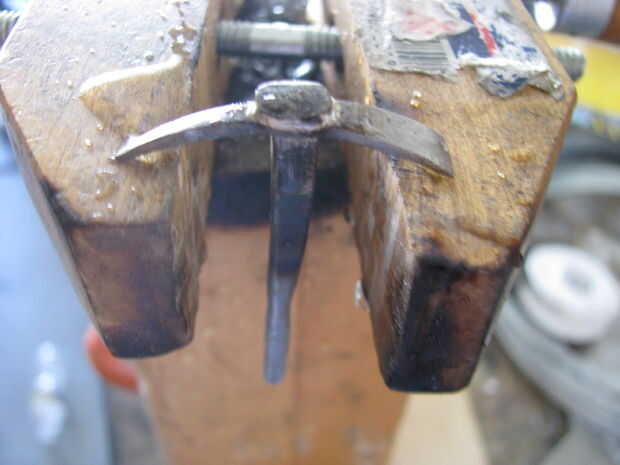 A flare la parte superior de la manija fija en mordazas de tornillo de banco y me martilló en él. Luego soldó el pico a la manija. Archivos de hobby más cortan la forma.