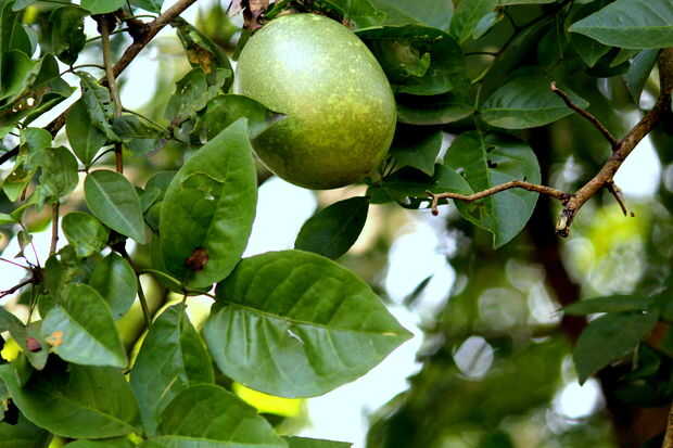 Bael, también conocida como la "manzana madera", es una especie nativa de la India se encuentra a lo largo de Sureste Asia.It es un árbol que crece hasta una altura de 3 a 6 metros. Las hojas de este árbol son ovalados en la forma y las flores tienen una fragancia agradable. El grande, redondas u ovales en forma de fruto son verdoso blanco en color con una superficie exterior suave pero duro-a. El contenido interno de la fruta es mucilaginoso y débilmente aromático. La fruta del bael se puede comer frescos o secos.