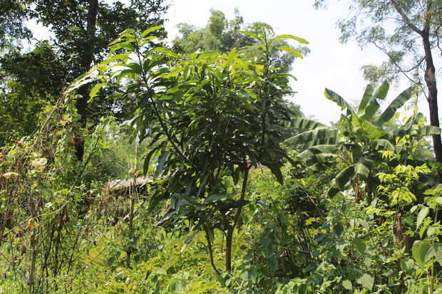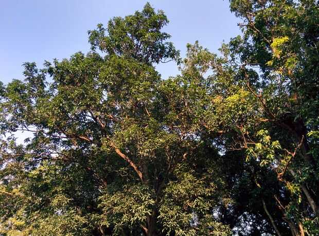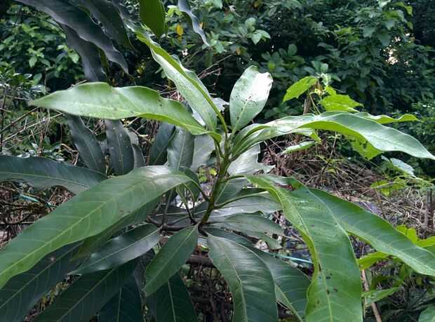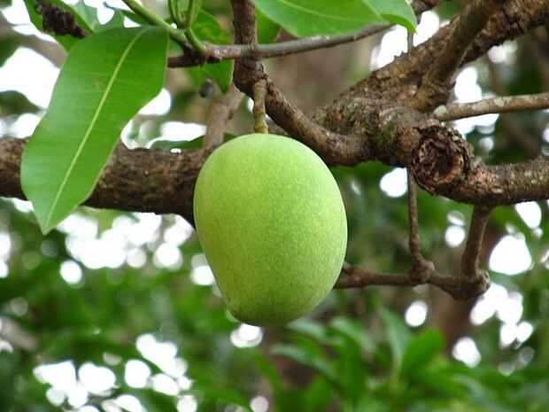 El mango es un gran árbol que se separa, que es bien conocido en todos los países tropicales. Las diferentes variedades del árbol varían en altura. Las hojas 12.5-25 cm. de largo, son simples, verde y rígida cuando está totalmente crecido. Las hojas maduras son coriáceas, brillante y verde oscuro en color. Los frutos inmaduros se comen a veces llano o con una pizca de azúcar / azúcar y polvo de Chile.