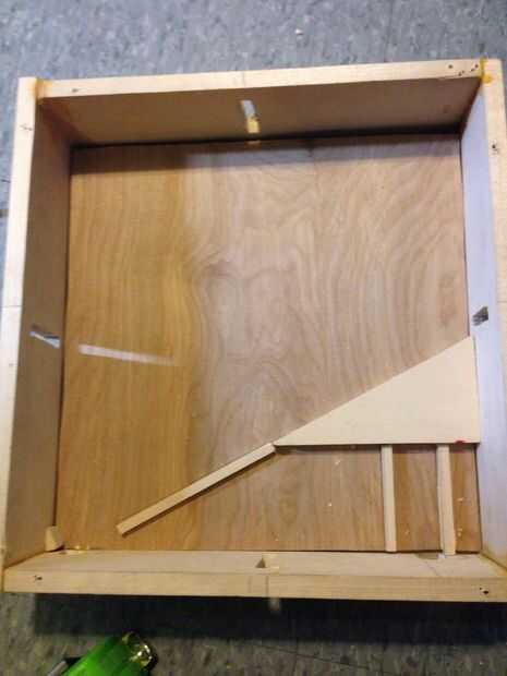 Aquí es donde quieres que inicie, con su placa de madera de 1 pulgada de 5/8 pie en primer lugar usted puede pegar en su pasador de madera gruesa de 1/2 pulgada en la parte inferior arriba a la derecha de esa placa (sugiero taller para que la bola se deslice mejor la a las salidas) entonces con su 2 3/4 de pulgada de altura, 5 1/2 pulgadas de largo , diagonal cortar pieza de madera y ponerlo en el borde externo derecho de la placa interna y va 5 1/2 pulgadas desde la parte inferior de la misma, con el fin de mantener la bola rodando en la dirección correcta, luego se corta tres tacos cuadrados de madera en 1 que es de 5 pulgadas de largo, 2 pulgadas 2 3/4 (ambos son 1/8 de pulgada de grosor) , como también mantener la bola en tarea hacia sus agujeros respectivos. Luego que hayas terminado de hacerlo, puede pegar en el 1/2 pulgada de gruesa madera espiga y el resto de su base en el producto final de la estructura inferior. Y si no pones las salidas en. Correctamente, como lamentablemente hice yo entonces la solución era simple, hacer una diagonal forma parte del tablero de madera de un tablero extra y hacen así que su poder hacer la bola automáticamente a la salida.