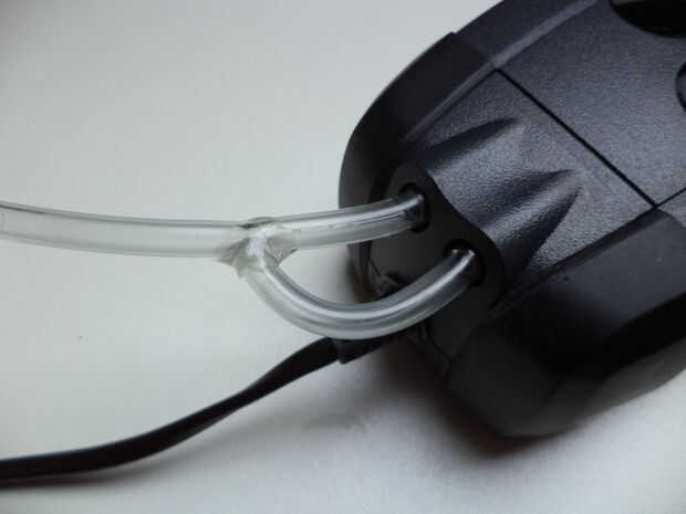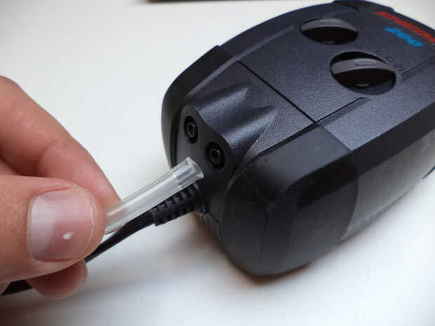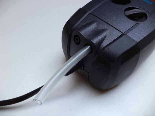 Conecte el tubo de acuario a la bomba a un lado. Asegúrese de que girar el poder de este lado en su punto más alto y el otro en su nivel más bajo.