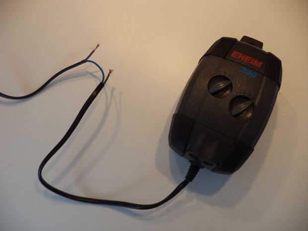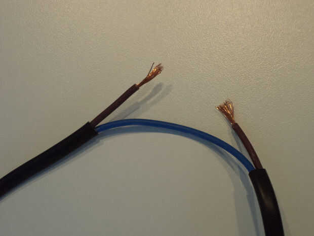 Después de invertir la bomba le indica para desensamblar aproximadamente 7 cm del cable de la bomba. A continuación se cortó uno de los dos cables y desmontan ambos lados.