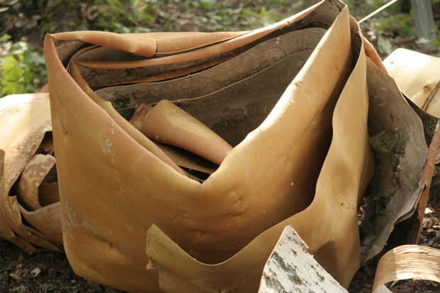 Si la corteza no va a utilizarse inmediatamente debe ser rodado en un paquete. La corteza debe ser rodada lateral (abajo el tronco del árbol) para contrarrestar la forma naturalmente curl (alrededor del árbol). Si no se está en esta dirección puede ser imposible para usarla más tarde. Mientras se seca la corteza será más frágil y menos flexible. Corteza puede ser revitalizada algo por exponerlo a la humedad y calor. John Manthei, director de campo, recomienda dejarlo relajarse en una sauna caliente (baño de vapor).