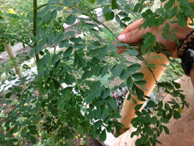 Ventajas: Las hojas son ricas en vitaminas A, C y B1, aceites beneficiosos y micronutrientes. Las hojas tienen un efecto estabilizador sobre la presión arterial y los niveles de glucosa. También se utilizan para tratar la ansiedad, diarrea e inflamación de colon, infecciones de la piel, escorbuto, parásitos intestinales y muchas otras condiciones. Contiene carbohidratos (varios del tipo '' bueno '', incluyendo las fibras, 3-13%). Moringa tiene un considerable contenido de macro y microelementos tales como calcio, hierro y azufre, todo absolutamente necesario para una buena salud vital. General tónico, antiinflamatorio, contra el cáncer, diurético, antibacteriano, antihelmíntico (inducir parásito eliminaciones (mata parásitos y sus huevos)), reducir la fiebre, reducir el dolor de cabeza, relajante sedante, laxante, antidiarreico, antihipertensivo, antidiabético, hepatoprotector.
