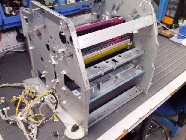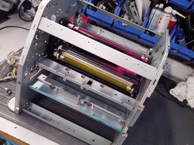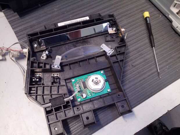 La Asamblea de láser cuenta con un Diodo de láser clase 3B Invisible luz y si no eres cuidadoso puede dañarlo. Por suerte el diodo laser esta dentro de la Asamblea de láser junto con varias lentes y un espejo giratorio.