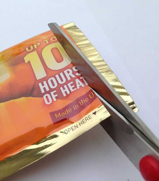 Asegúrese de tener los suministros útiles al hacer esto, porque usted necesitará actuar rápidamente como la plancha comenzará a moho (que es lo que crea el calor) tan pronto como se corta la bolsa abierta, exponiendo al aire. No corte la mano más caliente todavía.