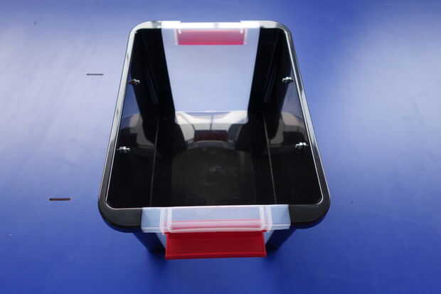Poner los tornillos por los agujeros, pero asegúrese de que las cabezas de los tornillos en la parte exterior de la caja. Atornille las tuercas en los pernos.