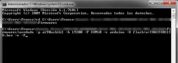 Desplácese a la carpeta donde colocaste el archivo hexadecimal que desea flash. Ejemplo: "arduino_midi.hex" "TRACTORCITO.hex"