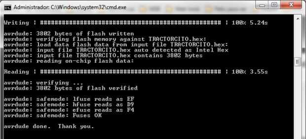 Oprimir la tecla Enter después de pegar uno de estos comandos se activará el proceso de programación y verificación de procesos. Una vez terminado, deberíamos ver un mensaje como el que está en la figura 3.