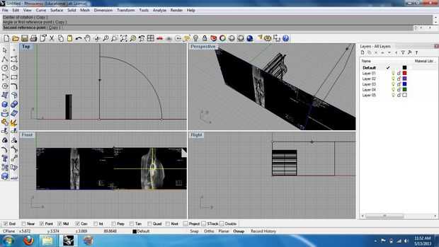 Realizar el mismo proceso en la segunda imagen: curva de puntos de control, parche, extrusión de superficie. Ahora tienes dos objetos sólidos. (Imagen 6) Dependiendo de donde usted pone la segunda imagen, la línea de rastreo puede o no ser directamente sobre la imagen. Si no es así, el proceso funciona igual de bien. Sin embargo, para que el parche funcione correctamente, asegúrese de que la línea no está curvada a través de múltiples planos de coordenadas.