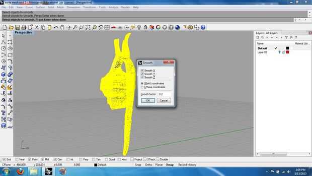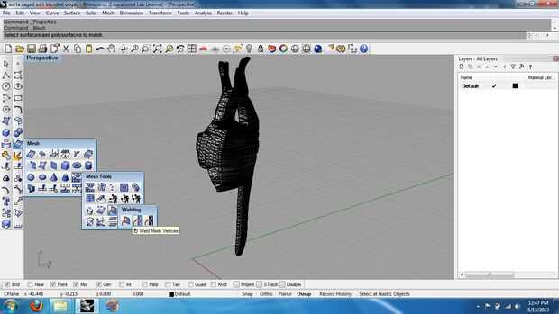 Cuando esté satisfecho con el arreglo y el diseño de su objeto, puede suavizar más lejos mediante el comando soldadura "soldar vértices de la malla". (Imagen 12) Una vez soldado con autógena, escriba en "suave" en la línea de comandos y pulse 'OK'. (Imagen 13) Usted puede hacer otra vez hasta conseguir la forma deseada.